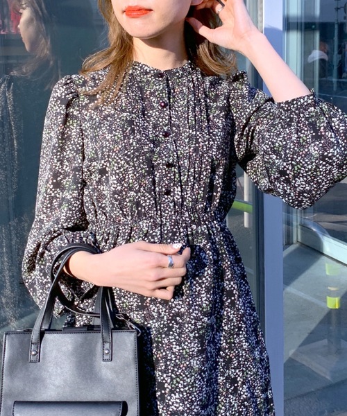 胸元のピンタックがクラシカルな雰囲気の花柄ワンピース WEB限定アイテムです ■デザイン ・着やすいピンタック仕様で、長シーズン着こなせるワンピース。 ・ウエストゴムでシルエットをきれいに見せてくれるのがポイント。 ・ふわりと広がるマーメイドラインでトレンドライクな着こなしが叶います。 ・カラーはオフホワイト、ブラック、ラベンダーの3色展開。花柄はアソートです。 ■スタイリング ・1枚でも主役になるワンピースです。 ・春は、定番のトレンチコートやGジャンが相性抜群です。 ・寒い時期は、上からニットやカーディガンを合わせていただくレイヤードスタイル◎ ・足元は、きちんと感のあるローファーや、ブーツ合わせがオススメです。 ----------------------------- 裏地:あり 光沢感:なし 透け感:オフホワイトややあり 伸縮性:なし ----------------------------- model:166cm ※着用、お取り扱いの際は、商品についている品質表示とアテンションタグを必ずご確認下さい。 ※ご覧のモニター環境や撮影環境により実際の商品と多少色味が異なって見える場合がございます。 ご理解の程よろしくお願いいたします。 ■お気に入り登録のおすすめ 【気になるアイテムを登録】 ハートをクリックしてお気に入りに登録すると 完売カラーの再入荷やラスト1点の通知、セールの通知を受けとることができます。 【ブランドを登録】 新商品や再入荷、セール通知など、いち早くブランドの情報を受けとることができます。