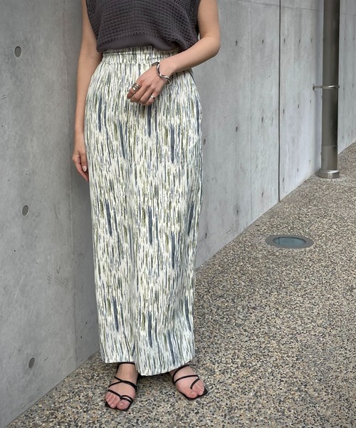 他にないアートペイント柄が目を惹く太さの異なるラインがポイントのタイトスカート。ペイントしたような模様を描きニュアンスのある雰囲気に。ウエスト切り替えを太めにすることでインしたときにメリハリが付きウエストに施したレザーがポイントとなってくれます。柄ものですが派手になりすぎずにスタイリングに馴染んでくれます。ほんのり透け感のある生地で涼しげな印象を与えてくれます。裏地がついているため透ける心配なく着用いただけます。------------------------------------------------------透け感/なし伸縮性/なし裏 地/あり厚 み/★☆☆☆☆ウエスト後ろゴム仕様両サイドにポケットあり------------------------------------------------------【お買い物を楽しんで頂く為に】■商品のお気に入り登録お気に入りの登録をして頂きますと完売カラーの再入荷通知や、ラスト1点の通知を受け取ることができます。■ブランドのお気に入り登録新商品の発売や再入荷、タイムセールやクーポン発行のお知らせなど&g'aimeがお届けするお得な情報を受け取ることができます。