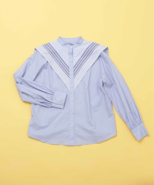 スカーフを加えたようなデザイン性のあるMIXストライプバンドカラーシャツ。フロントはV字、バックはセーラーカラーのような襟の切り替えにMIXストライプでより表情をつけたデザインです。 シルエットはシンプルなデザインにしており、襟とのバランスがキレイに見えるようにボトムにインするのがオススメです。 - n.'look 「ルック」 - デザイン性をより強く意識した、N.のクリエーションシリーズとなっております。 デイリー使いしやすい服も大切だけれど、“いつもと違う自分になれる服”や“ちょっとしたスパイスを加えてくれる服”で、 もっと可愛く。おしゃれに。個性を表現できるアイテムです。