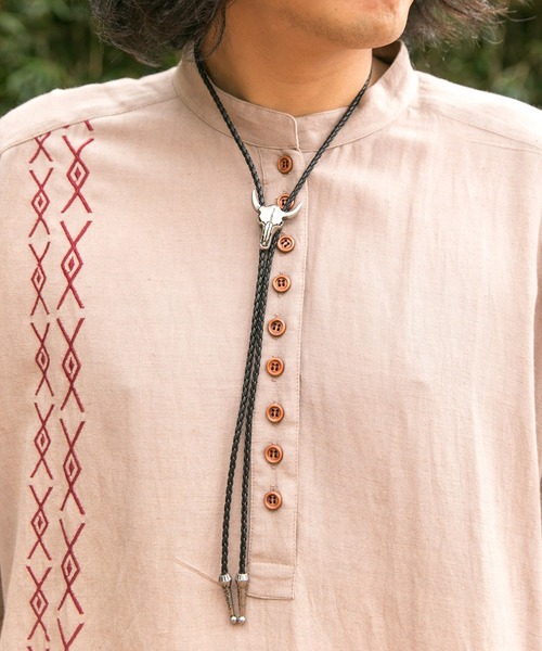 ネイティブアメリカンが身に着けるアクセサリーからインスパイアされたデザイン。 勇気や魔除けを意味するバッファローをモチーフに取り入れたネックレス。 モチーフは上下に動かすことができ、お好みの長さに調節できます。 コーデにプラスするだけでフォークロアな雰囲気に◎ ※こちらの商品は1点1点職人による手作りとなります。その為、形や色合いなど若干異なる場合がございます。あらかじめご了承ください。 Amina Collection Co.,LTD.