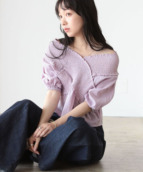 デコルテラインがきれいに 女性らしい雰囲気のオフショルダートップス。太めのシャーリングがしっかりとホールドし、きれいなシルエットに。首元が大きく開くので、ネックレスをプラスするとよりお洒落な印象になります。ボトムスは今年気分のハーフパンツやハイウエストパンツと相性抜群。 チューブトップなどストラップのないインナーを合わせるのがおすすめです。 ■BLACK STAFF Model:H167(cm) Size: ONE SIZE ■ORANGE、PURPLE Model:H:160(cm) B:75 W:59 H:85 Size:ONE SIZE ********************** ケア方法:洗濯機可 (※詳細は商品についている洗濯表示タグをご覧ください。) 生地の厚さ:やや薄手 透け感:なし 伸縮性:あり 光沢感:なし 裏地:なし ********************** ※画像の商品はサンプルのため、実際の商品と仕様が異なる場合がございます。 ※光の当たり具合やパソコンなどの閲覧環境によって実際の色味と異なって見える場合がございます。予めご了承ください。 ※商品の色味は商品単体で撮影した画像をご参照ください。 ◆BeAMS DOT(ビームスドット)◆ 【お買い物をよりお楽しみいただくために】 ▼商品のお気に入り登録(ハートマークをクリック) 完売カラーの再入荷通知や、ラスト1点の通知、値下げの通知を受けることができます。 ▼ブランドのお気に入り登録 新商品や再入荷など、いち早くブランドのお得な情報を受け取ることができます。
