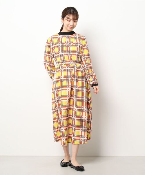 思わず目を惹く♪主役級ワンピース●detail大胆に施されたジオメトリック柄が存在感をプラス。ビビットな配色カラーが印象的なアイテム。ウエスト部分がゴム使用なのでストレスフリーに着用可能。毎日着たくなるデイリー使いに最適なワンピースです。●fabric軽やかな印象で生地に程よい艶感とふっくらとした触り心地。シワになりにくいポリエステル素材を採用。裏地がしっかりついているので安心して着ていただけます。●coordinate一枚でスタイリングが完成するワンピース。足元はスニーカーで抜け感を演出するのがオススメ。ショートブーツや靴下にパンプスなど様々な印象で楽しめます。