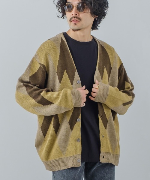 どこかレトロな佇まいの総柄ジャガードカーディガンのご紹介です。●ゆったりとしたサイジングが今どきなVネックカーディガン●落ち着いたトーンのカラーリングと目を引く総柄がコーディネートのアクセントに◎●お手入れが簡単でチクチクしにくいアクリルを使用●大人っぽい雰囲気で男性はもちろん女性にもオススメトレンドを感じさせる落ちた肩位置とゆるめのサイジングはワイドパンツや話題のフレアパンツとの相性バツグン。グレー、ベージュを基調としたカラーリングは総柄でありながらも主張しすぎず、カジュアルなスタイルにはもちろん柄物のパンツと合わせても意外な程しっくりときます。しっかりとした生地感で肌寒い春先の羽織としてピッタリです。