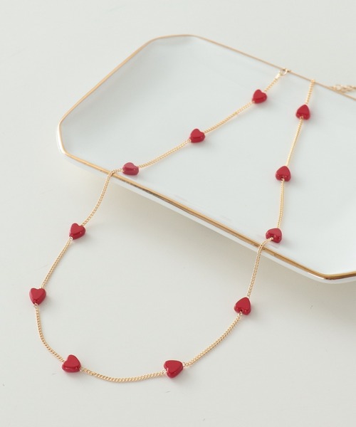 ■鮮やかな赤のハートがキャッチーなデザインネックレス■ ハートモチーフを等間隔に配置したショートネックレス 真っ赤なハートが首元のポイントに♡ 存在感あるキャッチ―なデザインです◎ ▼商品画像について▼ ※撮影場所やお使いのモニター環境により実際の商品と若干お色味が異なる場合があります。 ======================= 《お気に入り登録》でお得な情報がたくさん! ▼商品のお気に入り登録▼ ♡をクリックしてお気に入り登録をすると 再入荷通知やラスト1点の通知をお知らせします。 ▼ブランドのお気に入り登録▼ お気に入りショップに追加していただくと いち早く ThreeFourTime のお得な情報・新入荷情報を 受け取ることができます。 =======================