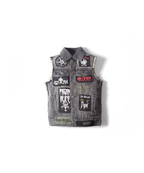 在分支眾多深奧的METAL文化當中最具特色的服裝當屬手工縫製樂團布章的丹寧背心這一款以本季翻玩N.W.O.B.H.M.樂團圖像布章為中心利用不規則不收邊等等處理方式表現佐以強烈的洗舊加工再現METALHEAD們日常服裝一款張力十足的單品衣長 01(M)56 02(L)59 03(XL)62肩寬 01(M)42 02(L)44 03(XL)46胸圍 01(M)46 02(L)48 03(XL)50*尺寸皆為平放丈量,單位為cm