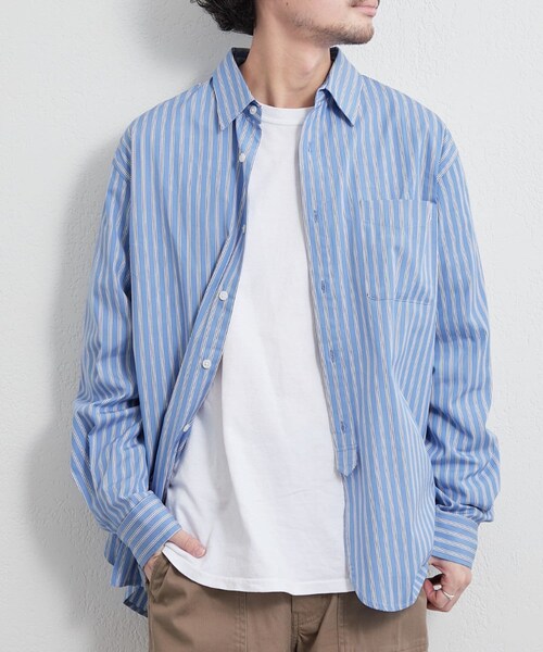 ■デザインストライプ柄のレギュラーカラーシャツの登場です。身幅や袖周り、丈を長く取ったトレンドらしいオーバーサイズ。ルーズなシルエットをお楽しみいただけます。春らしい爽やかな2パターンのカラーリング展開も嬉しいポイント。一枚持っていると便利な、春コーデのマストアイテムです。■素材表面が滑らかで肌触りのいいブロード生地を使用。独特な光沢がスタイリングに高級感をプラスします。丈夫ながらソフトな肌触りはデイリーユースに最適。ルックスと実用性を併せ持つイージーケアが魅力のシャツ生地です。■スタイリングボタンを閉めた1枚着や肌寒い日インナー使いももちろん、ボタンを開けて羽織としても様になります。身幅が広いので、パーカーやニットなど厚手のトップスに重ねても嵩張りません。ストライプ地と爽やかなカラーリングはスタイリングに清潔感をプラス。カジュアルからきれいめまで幅広いコーディネートに対応するアイテムです。▼気になる商品を登録ハートをクリックして《お気に入り登録》がオススメです!セール情報や完売カラーの再入荷通知、ラスト1点の通知などを受け取ることができます!▼ブランド新商品や再入荷など、ブランド情報をいち早く受け取ることができます!※画像の商品はサンプルです。 実際の商品と仕様、加工、サイズ、素材が若干異なる場合がございます。