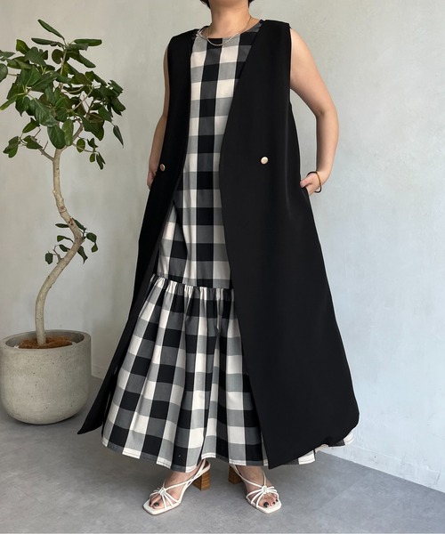 2パターンの着こなしが楽しめる 2WAYジャンパースカート 【ポイント】 ●ストンと落ちたストレートシルエットが オトナ可愛い旬顔ジャンスカ ●フロントのゴールドボタンが上品なアクセントに ●深めVのネックラインで顔回りをスッキリ見せてくれます ●ボタンを開ければ大人ムード漂うジレベストに早変わり ●ジャンスカとして着用する際に便利な、 ボタンで付け外し可能な内紐付き (ジャンスカとして着用する場合は、 ペチコートなどインナーの着用をオススメします。) ●両サイドにポケット付きなのも嬉しいポイント ●インナーを変えればロングシーズン活躍◎ 【オススメコーディネート】 ・ボリューム袖のブラウスをインナーに合わせた シックな雰囲気のトレンドスタイル ・ハイネックトップスで大人シンプルに着こなすのも◎ ・チュニックシャツ×デニムの上に サラッと羽織ったこなれジレコーデ -------------------------------------------------------------- 生地の厚さ:普通 伸縮性:なし 透け感:なし 裏地:あり 洗濯方法:ドライクリーニング可 -------------------------------------------------------------- ※商品のお取り扱いに関しましては、商品に付属の アテンションカード、洗濯ネームをご覧ください。 ※撮影場所やお使いのモニター環境により若干お色味が 異なる場合がございます。 特にロケの撮影では明るく見える傾向にございます。 ※サイト上ではフリーサイズの表記ですが、商品タグには Mサイズと表記されている場合がございます。 その場合、ワンサイズでのご用意となりますのでサイズミス などではございません。詳しいサイズはサイズスペックを ご確認いただきますようお願い致します。 ※サイト上でのカラー名とお届けした商品に記載されている カラー名が異なる場合がございますので予めご了承ください。 --------------------《Information》-------------------- 【商品のお気に入り登録】 →カートに入れる右側の【♡マーク】をクリック! 完売カラーの再入荷通知やラスト1点の通知、 セールの通知を受け取ることができます。 【ブランドのお気に入り登録】 →ブランドタグのページから【♡お気に入りショップに追加】 をクリック! 新商品や再入荷など、ブランドのお得な情報を いち早く受け取ることができます。 是非ご登録頂き、お買い物をお楽しみください◎ <返品・キャンセルについて> ・着用・洗濯後の返品は致しかねます。 ・商品到着後、着用前に商品を確認して頂きますようお願い致します。