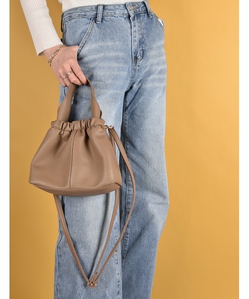 トレンドのミニバッグ。ハンドルと開口部のくしゅっとしたディティールがポイントのアイテム。マグネット開閉なので小物がさっと取り出せます。ショルダーストラップは取り外し可能です。※内側…オープンポケット×1、ファスナーポケット×1