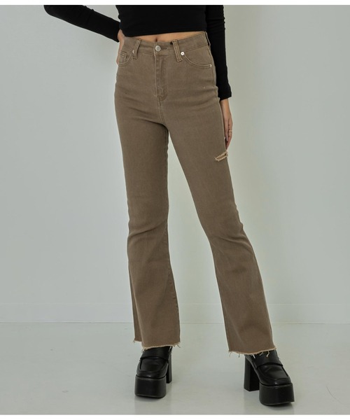 サイドカットデザインがアクセントのフレアパンツ。USED風な風合いにストレッチが効いていて穿き心地も抜群。フレアデザインは足長効果があるのでヒールと合わせると更に◎クロップドトップスに合わせたスポカジュコーデや、カーデと合わせた大人コーデにも相性抜群です。※ストレッチあり※裏地なし※ポケットあり※裾切りっぱなし※生地のデザイン上、実際の商品と画像とでダメージの配置が異なる場合がございます。予めご了承ください。※この商品は非常に色落ち、色移りしますのでご着用の際は十分ご注意ください。※商品のお取扱いに関しましては、商品に付属のアテンションカード、洗濯ネームをご覧ください。※モデル着用画像は光の当たり具合で色味が違って見える場合がございます。実物の商品の色味はマネキン着用画像をご参照ください。【お買いものをお楽しみいただく為に!】▼商品のお気に入り登録完売カラーの再入荷通知や、ラスト1点の通知、セールの通知も受け取ることができます。▼ブランドのお気に入り登録新商品や再入荷など、いち早くブランドのお得な情報を受け取ることができます。