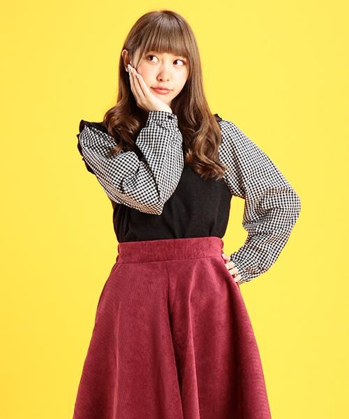 これ1枚でまるで重ね着したような着こなしが楽しめる、異素材コンビデザインのトップスです。袖はハリのあるコットン素材で、きちんと感をキープしています☆シルエットをガーリーアップしてくれる、袖のフリル使いに注目です!