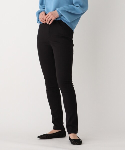 【My style is...掲載】 こだわりの素材とシルエットで仕立てた、大人気の定番スキニーパンツ 〔2wayストレッチ〕〔洗える〕〔WEB限定サイズあり〕 【素材】 良質な細番手のコットン(綿)にライクラストレッチファイバーを混紡し、高いストレッチ性と戻りの良さを実現した、本格的な表情と機能性を両立したデニム素材を使用しています。 程よくスリムなシルエットですが、しっかり縦横のストレッチが効いているので、驚くほど快適な履き心地。伸縮性が高いことに加え、戻りの良さが特徴で、レッグラインを美しく魅せるとともに、ひざ抜けや型崩れもしにくくなっています。 ※ホワイト(002)はやや透け感があるため、インナーの着用をおすすめします。 【デザイン】 シルエットに徹底してこだわったベーシックなスキニーデニム。無駄のないほどよくスリムなテーパードシルエットに仕立て、デニムの加工も脚が細く長く見えるように色落ちを計算しています。やや深めのライズに設定し、腰回りはしっかりカバー。座った時のバックショットなど、女性が気になるシーンもすべて計算したシルエットです。膝下はすっきりさせながらもややゆとりを残すことで、タイトすぎずキレイに見えるシルエットです。 丈は様々なシューズに合わせやすいジャストレングス設定。 ※ポケット数:横×3、後ろ×2 【おすすめポイント】 ベーシックでありながら、素材とシルエットに徹底してこだわることで、美しさと快適性を両立したスキニーパンツ。毎シーズン、リピートのお客様も多い名品パンツです。 014カラー(グレー)、052カラー(ベージュ)は硫化加工によるフェード感にこだわったNEWカラー。 シャツやカットソー、ニットはもちろん、ワンピースやチュニック丈のトップスに合わせたスタイルもおすすめです。 WEB限定サイズ:34・42 こちらの商品は主に春夏に着用いただける商品です。 モデル情報:身長168cm B76 W58 H86 着用サイズ:38(M) 店舗へのお問い合わせ商品番号:637-64101 ●製品寸法: 34(SS):W58cm H76cm 股下70cm 前股上24cm 渡り幅23cm 裾幅12cm 36(S):W61cm H80cm 股下70cm 前股上24cm 渡り幅24cm 裾幅13cm 38(M):W64cm H84cm 股下71cm 前股上25cm 渡り幅25cm 裾幅14cm 40(L):W67cm H87cm 股下72cm 前股上26cm 渡り幅26cm 裾幅15cm 42(LL):W70cm H90cm 股下72cm 前股上26cm 渡り幅27cm 裾幅16cm 備考: