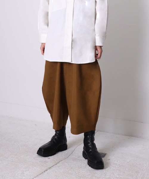 【ATMA】音楽を感じさせ、フェミニンなスタイルを提案するユニセックスブランド==============================================◆Detailひざ周りのサイズ感にかなりボリュームも持たせたバルーンシルエットワイドパンツ全体的に丸みのあるシルエットで、一際個性的なワイドシルエットがポイント柔らかく肌触りの良い生地とウエストゴム仕様でストレスフリーな着用感です。◆Stylingモード感があり、シンプルなトップスとのスタイリングに合わせてもしっかり決まるデザインで、コーディネートの主役になってくれます。ウエスト位置で丈感を変えることも可能で、足元はハイカットのレースアップブーツからローファーまで相性の良いパンツです。------------------------透け感/なし光沢感/なし伸縮性/あり(ウエストゴム)裏地/なしポケット/あり厚み/普通------------------------==============================================the par_k store《SHOP CONCEPT》魅力あるブランドを発見、紹介し、色々な人たちが集まり、楽しむ“パーク” のようなお店を目指して※掲載画像に関しましては、屋外や屋内での光の当たり方やパソコンやスマートフォンなどの閲覧環境によって実際の色味と異なる場合がございますので、予めご了承ください。※サイト内でのカラー名と、お届け商品に記載されているカラー名が異なる場合がございます。素材