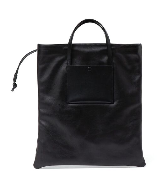 マチ無しトートタイプのバッグ。 紐を絞ると巾着型になり、立体感とボリュームのある違った印象で持つことができます。 絞った紐は肩がけのショルダーにすることも可能。 フロントに施されたポケットは二重になっており、カードや小物などを収納できます。 【MARROW】(マロウ) 2016SSよりスタートした日本人デザイナーによる日本製にこだわったバッグブランド。 真鍮金属や縫製など細部にまで日本製にこだわったクオリティの高さと、必然性のあるもので構成されたミニマルなデザインを掛け合わせた、洗練された印象が魅力です。 ※汗など濡れた状態での摩擦などにより、色落ちします。濃色製品の場合は淡色の衣類と合わせることは避けて下さい。 ※部分によって革の特徴であるシワやムラなどがある場合がございます。予めご了承下さい。 ※部分によって染めムラが出ることがあります。また、斑点や傷のようなものがある場合がございますが、こちらは天然素材特有のものになります。予めご了承下さい。 ※水分が付着するとシミや型崩れの原因となります。カビが発生しやすいので、着用後は風通しの良いところで陰干しして下さい。 ※末永く愛用頂く為に、アテンションタグ・洗濯ネームを必ずご確認の上、着用又はお取り扱い下さい。