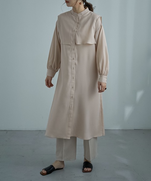 トレンドライクな大人顔ワンピース 「ケープカラーデザインシャツワンピース」が入荷! 平面的になりがちなワンピースのシルエットを ほんの少し立体的に。メリハリ感をつけてくれるワンピース。 さり気なく存在感を放つケープカラーが 顔まわりの印象を華やかに。 しかもストンと落ち感のある素材で I(アイ)ラインの縦シルエットを強調。 スッキリ見えて楽に着られるお洒落な旬顔ワンピースです。 【備考】 ・裏地:なし ・透け感:オフホワイトのみややあり 【もっとお買い物を楽しんで頂く為に】 ▼商品のお気に入り登録 お気に入りアイテムの値下げ・再入荷・在庫1点などの通知を受け取ることができます。 ▼ブランドのお気に入り登録 新作アイテム入荷や人気商品の再入荷、タイムセールやクーポンなど、いち早く「bflat」のお得な情報を受け取ることができます。