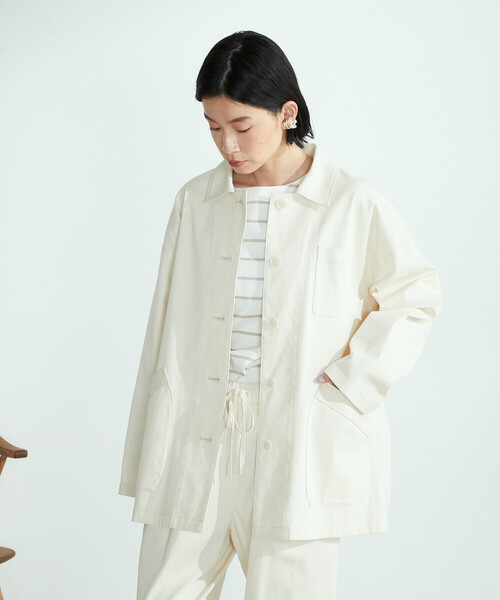 ◆ONIGIRI(おにぎり)のカバーオール◆ 《素材》 伸縮性のある糸に、しっかりした綿の糸を巻き、きれいめ感とストレッチ性を持たせた素材。 伸縮性があるので、着心地の良さが特徴です。 《デザイン》 ゆったりした、羽織り感覚で着られるステンカラーブルゾン。 第1ボタンをはずすとテーラードのような着こなしもできます。 お尻の隠れる丈で、軽い1枚仕立て。 ニットの上からでも、コート感覚で着られます。 また、太糸のステッチがアクセント。 大きめのパッチポケットは、デザインポイントと実用性を兼ね備えています。 …………………… 透け感:なし 厚さ:普通 伸縮性:あり 光沢感: 裏地:なし ポケット:あり 洗濯方法:洗濯機洗い可 …………………… ※画像の商品はサンプルとなりますので実際の商品と仕様、加工、サイズが若干異なる場合がございます。 ※こちらの商品はFIVE FOXes独自の採寸方法となっています。 本サイトのサイズガイドと採寸方法が異なる場合がありますのでご了承ください。