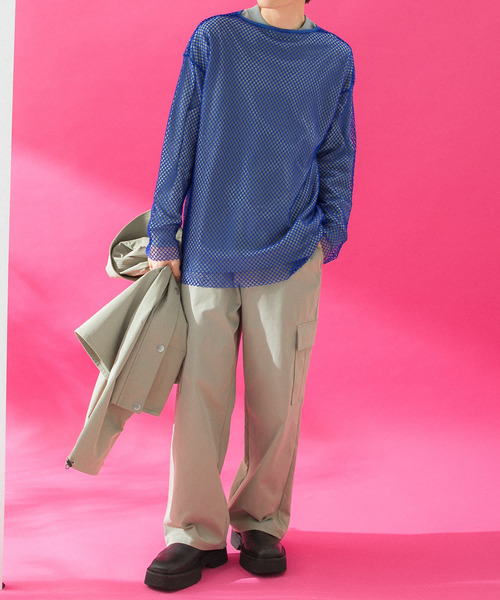 このアイテムは【WEB/一部店舗限定】商品です。 大胆なメッシュの編地がヌケ感を演出してくれるメッシュトップス。 トレンドのレイヤードスタイリングを楽しめる透け感あるメッシュBIGロンT。 〇伸縮性に優れており、ストレスフリーな着用感が嬉しいポイント 〇ルーズなシルエットでさりげなく体型カバーも叶えてくれます。 〇大胆に肩から落ちるドロップショルダーが特徴のワイドシルエット。身頃、丈感に拘っているのでメンズ、レディース問わず着用できるユニセックスシルエットです。 〇合わせるインナー次第でシーズンレスに長く着回しできる便利な1枚 styling スウェットやロンTなどインナーに合わせて1年を通してレイヤード可能なアイテム!シャツやワンピースの上にも羽織れるオーバーサイズで、着丈・そで丈ともに長めにしているのでインナー使いとしての使いやすさも◎。あえてスポーティじゃないキレイ目なアイテムとMIXさせるレイヤードスタイルもおススメ。春夏はキャミソール合わせでヘルシーな肌見せスタイリングを楽しんでください。 material カットソーのメッシュ素材を使用しています。 レイヤードスタイリング 着回し抜群 春服 ボリューム袖 長袖 レイヤード お出かけコーデ デート服 男女兼用 ルーズシルエット ビックシルエット バイカラー 配色 ゆったり ざっくり ストリート パステル デザインカットソー 男女兼用 韓国スウェット トレーナー 韓国ファッション ストリートファッション 海外ファッション インスタ映え パーカー フード ユニセックス ※着用時にベルト・バッグ・アクセサリー・周囲の壁など表面の粗いものとの摩擦や、引っかかりにご注意下さい。 ※クリーニングの際にも、他のものとの引っかかりにご注意下さい。 ※その他お取り扱いに関しましては、商品に付属のアテンションタグをご覧ください。 ※商品画像は、光の当たり具合やパソコンなどの閲覧環境により、実際の色味と異なって見える場合がございます。予めご了承ください。 ※商品の色味の目安は、商品単体の画像をご参照ください。 ----------------------------- 透け感:あり 伸縮性:あり 裏地:なし 光沢:なし ポケット:なし -----------------------------