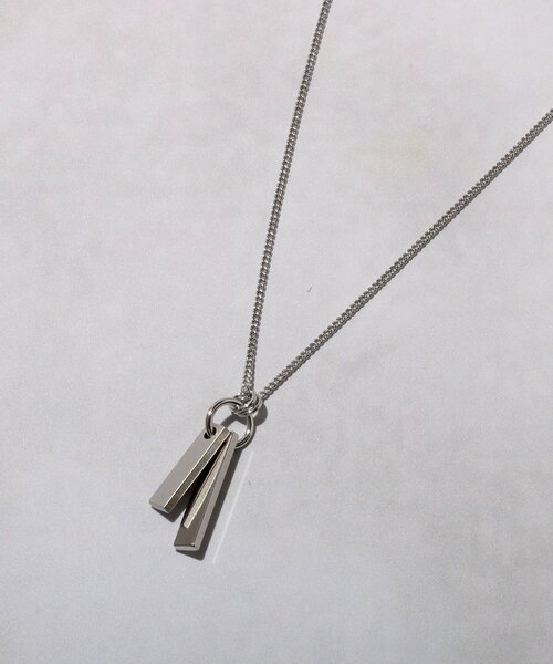 シンプルなデザインでお使いのしやすいバーネックレス 【素材】 気軽にお使い頂ける真鍮素材。 上品な光沢感が特徴のアイテムです。 【デザイン】 長さやカラーに変化を付けたダブルバーのトップに、シンプルなチェーンを組み合わせたネックレス。 メタルならではの美しい光沢がクールなスタイリングを作り出します。 ロゴの入った巾着付き。 飽きのこないシンプルなデザインですので、ギフト/プレゼントとしてもおすすめのアイテムです。 【スタイリング】 主張しすぎないので幅広いアイテムと相性が◎ スタイリングのアクセントになり首元をクールに彩ってくれます。 - BRAND CONCEPT - 時代を超えて支持されるトラディショナルなアイテムをベースに、アソビ心とストリートの自由な発想を取り入れ、日本独自のミックススタイルを提案します。 店舗へのお問い合わせ商品番号:170-04815 ●製品寸法: 00:全長45cm モチーフH2.5cm モチーフW0.5cm 付属袋H12.8cm 付属袋W10.5cm 備考: