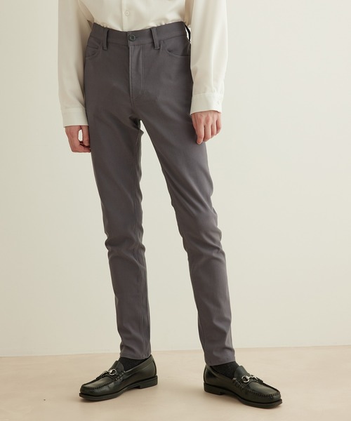 【 ハイストレッチ素材 】ストレッチスキニーパンツ■素材、機能ツイル見えのストレッチ素材を使用しています。伸び感が良く、着用時にもストレスの無い生地が特徴です。■シルエット、デザインシンプルな5ポケットデザインのスキニーパンツで、フィット感が出るように細めのシルエットにしています。履き心地が良い素材なのでスキニーを買ったことない方にもオススメのアイテムです。■カラーシンプルなブラック、グレーの2色展開です。■スタイリングコート系のアイテムやビッグサイズのブルゾンなど、足にフィットしたデザインな分、上にボリュームを持ってくるスタイリングがバランスが良くてオススメです。裏地:なし透け感:なし伸縮性:あり生地感・厚さ:普通ポケット:ありその他仕様:なしモデル身長 177cm 着用サイズ L