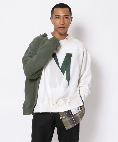 スウェット2種類とチェックシャツを巧みに切り替えた1枚で映えること間違い無しのトップスです。フロントにはブランドのイニシャル『M』をプリント。アシンメトリーに組み合わせた切り替えや切りっぱなしのリブが垂れるなど絶妙なバランスがミハラらしいデザインです。スウェット部分には、汚しやダメージ加工が施されヴィンテージ風な雰囲気になっています。一枚でもレイヤードにもコーディネートにアクセントを加えてくれるオススメアイテムです。Maison MIHARAYASUHIRO/ メゾン ミハラヤスヒロDESIGNER: MIHARA YASUHIRO / 三原 康裕1972年,福岡県出身.大学在学中,独学で靴作りを始める.1999年A/Wコレクションよりウェアラインを開始.2000年,メンズコレクションをスタート.プーマとのコラボレーションでPUMA BY MIHARAYASUHIRO(プーマ バイ ミハラヤスヒロ)を発表.このコラボレーションスニーカーは世界各国でも販売され,世界的に名が知られるようになる.