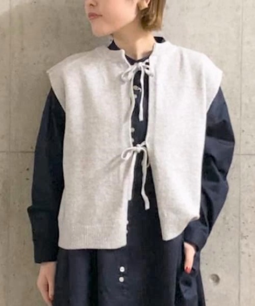 ーーー 綿混ストレッチの優しい肌触りが心地よいニットベスト。 トレンドポイント(短め着丈・バックディティール)をスッキリとまとめました。 ナチュラル見え素材とトレンド要素デザインが合わさり、取り入れやすい1枚に。 ーーー シャツ合わせやワンピース合わせなどアイテムを選ばすコーデが楽しめるアイテムです。