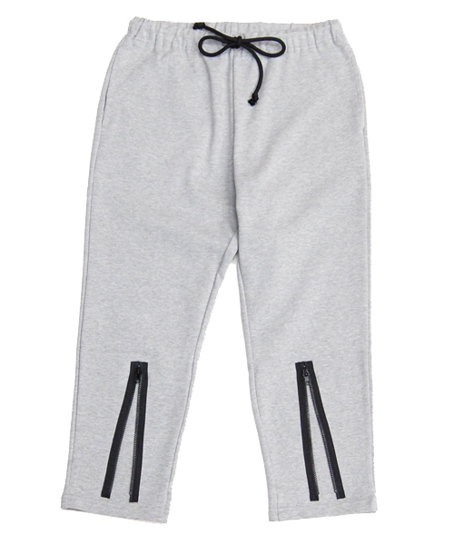 シルエットが綺麗なイージーパンツ! シルキーな肌触りでストレッチ性の有る、コットンポンチ生地を使用した、 アンクル丈のジップパンツになります。 一見するとスウェットパンツなのですが、 独特の張り感が有る生地を使用する事で、 裏毛タイプのパンツには無い、綺麗なシルエットになっております。 テーパードシルエットのアンクル丈で、さらに裾部分のファスナーを開閉する事により、 2WAYのシルエットを楽しめます。 ナイロンアウターやスェットなどとの相性も抜群ですが、 ロングレングスのシャツなどにも合わせ、 コーディネイトで表情の変わり、デイリーに使用出来るアイテムです。 ウエストにドローコードを配することで、カジュアル感をプラス。 ストレッチ性の効いた生地の特性で、着用時のストレスを感じさせない、 ラフでイージーな部分もポイント。