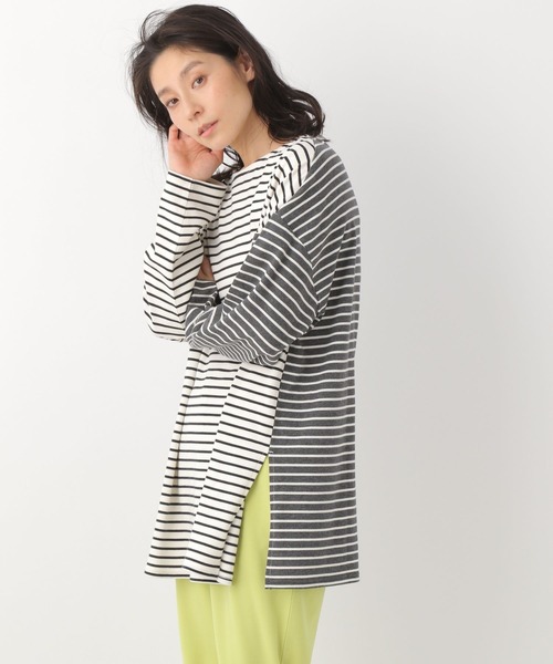 コーディネートの主役にもぴったりなボーダートップス 《デザイン》 今期マストトレンドのボーダートップスです。切り替えの入ったクレイジーパターンはデザイン性があり、着るだけでサマになります。派手になりすぎないよう配色を2色にして落ち着いた印象に仕上げているので、大人っぽく着られます。また、前後どちらでも着られるので、その日の気分に合わせた使い分けも可能です。 《スタイリング》 やや長めの着丈なのですっきりしたパンツと合わせるとバランスよく決まります。スリットが入っていることでスカートやボリュームのあるボトムスとの相性も◎。 ------------------------------------------------------- 【気になる商品はお気に入り登録がおすすめ!】 ・在庫残りわずか ・再入荷 ・セールの情報 などの通知を受け取ることができます。 ぜひ♡をクリックして、気になる商品を「お気に入り登録」してくださいね! 【ブランドのお気に入り登録も!】 新商品や再入荷、セール、クーポンの配布など、いち早くお得な情報を受け取ることができます。 -------------------------------------------------------