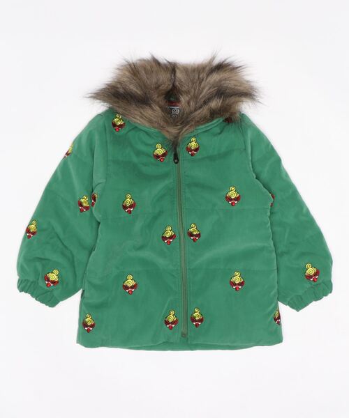 マットな質感の中綿ブルゾンは、カジュアルなデザインながらもクラシカルな素材感で上品に仕上げたアイテム。さらにはMINI FACEのおおきめ総柄刺繍を全面に施すことでクラス感をキープ。首回りのファーは取り外しできるのでシンプルにも着こなせます。袖口はゴムで切替になっており、温かさを逃しにくくなっています。品番:19410138