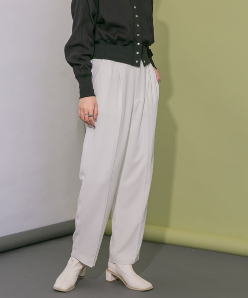 【きちんと感がありながらも楽な穿き心地が叶うパンツ】 ON/OFFの活躍が期待できるセンタープレス仕様のきちんと見えパンツ。シワになりにくく落ち感のある素材や、ウエストはイージーに穿けるオールゴム仕様もポイント。ご自宅で手洗いできるのも嬉しいですね。 ====================================== お気に入り登録のおすすめ ■商品のお気に入り登録 再入荷・ラスト1点、セールの通知などを受け取ることができます。 ■ブランドのお気に入り登録 新商品や再入荷、クーポン情報などお得な情報を受け取ることができます。 ====================================== POINT ・ON/OFFの活躍が期待できるデザイン ・楽な穿き心地が叶うウエストオールゴム仕様 ・ご自宅で手洗い可能 COORDINATE シンプルなデザインなのでトップスを選ばずに着ていただけます。すっきりとしたシルエットはフリルディテールブラウスなど甘めなアイテムと相性抜群です。 ※商品画像は、光の当たり具合やパソコンなどの閲覧環境により、実際の色味と異なって見える場合がございます。予めご了承ください。 ※商品の色味の目安は、商品単体の画像をご参照ください。 ----------------------------- 透け感 : なし 伸縮性 : なし 裏地 : あり(OFFのみ) 光沢 : なし ポケット : あり -----------------------------
