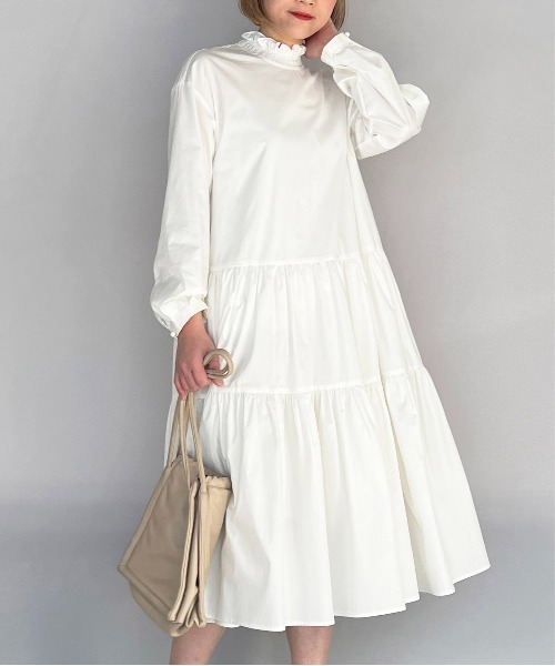 女性らしいシルエットが楽しめるティアードワンピース。 コットンブレンドのさらりとした生地を使用し、 これからの季節にピッタリな一枚。 襟のシャーリングやティアード、袖タック等で ふんわりと可愛らしさもありながら、 ベーシックカラーと鮮やかなカラー展開で 大人の方でも取り入れやすくなっています。 ※オフホワイトを着用の際は、ペチコート等の着用をおすすめします。 model:H164 着用サイズ:M ※撮影場所や明るさにより 実際の商品と色味が若干異なる場合がございます。 ☆商品のお気に入り♡登録を押せば ”再入荷通知”や”残りわずか通知” 値下げのお知らせが届きます! お気に入りのブランド登録していただければ新商品入荷のお知らせも届きますので 是非登録してみて下さい。