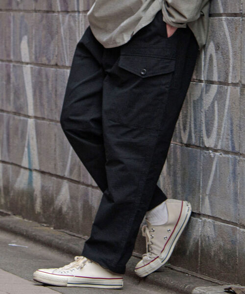 ミリタリーの雰囲気溢れるリップストップ生地を使ったイージーパンツ ●無骨さとすっきり感のバランスの良いワンポケットタイプのカーゴパンツ ●耐久性に富んだリップストップ生地を採用 ●腰回りにゆとりを持たせ裾に向かってテーパードしていくバルーンシルエット ●ウエストにシャーリングとドローコードを付けベルトいらずのイージー仕様 トレンドのワイドパンツに機能性もプラスしたデイリーユースしやすい1本。 アメカジコーデやストリートMIXスタイルはもちろん、きれいめカジュアルスタイルの外しとしてもおすすめしたいアイテムです。 【スタッフ着用コメント】 身長:170cm/体重:52kg/体型:細身/普段サイズ:M/着用サイズ:M ミリタリーパンツですがすっきりしたテーパードシルエットなのでジャケットやビッグシャツとの相性も良さそう。 レングスも長すぎず裾上げの必要もないのも嬉しいポイント。 リップストップ素材なので経年変化も楽しめます。 【GLOSTER/グロスター】 『男性であること、女性であること、日本人であること、人間であること。』 自由に生きる為に必要な洋服であり、着る人を主体と考えたプロダクトを提案します。 普遍的な洋服の礎であるワーク・ミリタリーをベースにエッセンスとして艶を加えて形にします。 洋服の原型を生かしながらもひねりの効いた素材を使い、ディテールは歴史の焼き増しではなく新たな価値観を創造します。 ※お取扱い上のご注意 アテンションタグを必ずご確認の上、着用又はお取り扱いください。 ※店頭及び屋外での撮影画像は、光の当たり具合で色味が違って見える場合があります。 ※商品画像に関しては出来る限り忠実に表示出来るよう努めておりますが、お客様がご利用のモニターの設定及び特性により、実際の商品と比較し色味に若干の誤差が生じる場合があります。 ◇商品のお気に入り登録◇ 【お気に入りに登録】を是非ご活用ください。 再入荷の通知や、ラスト1点の通知、セールの通知がいち早く届きます。 ◇ブランドのお気に入り登録◇ 新商品や再入荷など、いち早くブランドのお得情報が届きます。