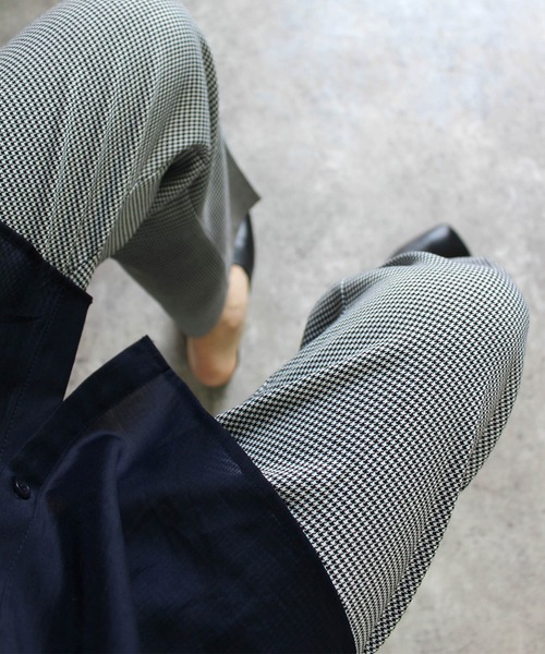 WEB限定 【大人のキレイめスタイルにぴったりなセンタープレスパンツ】 普段使いはもちろん、オフィスシーンにもおすすめの1枚。 ▼Design ・ウエスト下にタックを入れることで腰回りにゆとりを持たせ、すっきりとしたシルエットに。 ・センタープレスのデザインが美脚効果抜群でスタイルアップも狙えます。 ・ベーシックカラーからトレンド映えカラーまで揃えた豊富なカラー展開。 ・無地やチェック柄、トレンドのヘリンボーン柄まであるのでデザイン性も抜群◎ ・Backゴムで着心地も楽チン。 ▼Fabric ・ドライタッチな質感で上品さ演出。 ・繊細な生地感が着心地を快適に◎ ▼Styling ・ブラウスやロンT、カットソーとの相性は抜群です。 ・トップスのインスタイルで、上品な印象に。スッキリ見えも叶えます。 ・無地TやロゴTとの合わせでは大人カジュアルな仕上がりにも。 ・ブラウスやベーシックなアイテムとの合わせでオフィスカジュアルな仕上がりに。 ・どのシーズンのアイテムとも合わせやすいので、シーズンレスで着回し可能です。 ----------------------------------------- 【以下ブラウン/チドリ参考。カラーにより多少の誤差あり】 ・透け感:透けない ・伸縮性:なし ・生地の厚さ:薄い ・裏地:なし(へリンボーンのみあり) ----------------------------------------- 【スタッフ着用コメント】 身長159cm 実際に着用してみると、センタープレスのデザインが美しくとても上品な仕上がりに なりました。ロンT合わせはカジュアルな仕上がりに。ブラウス合わせでは上品な仕上がりに。 1枚持っておくだけでコーデの幅が非常に広がります。気品あるカラー展開や、チェックやヘリンボーンのトレンドのデザインが 大人カジュアルな仕上がりを演出します。