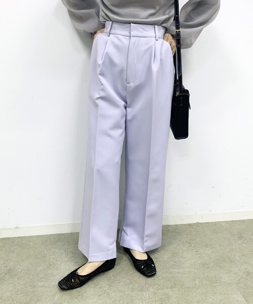 しっかりした肉感が特徴的な、きれいな面の布帛素材を使ったワイドストレートパンツ。 【素材】 しっかりとした肉感とさらっとした風合いが特徴的な、春らしい素材を使っています。 やわらかいカラー展開で春らしさを感じさせてくれる素材感です。 【シルエット】 ウエスト周りはすっきりと、インでもアウトでもきまるシルエットにおつくりしました。 広がりすぎない程よいワイドシルエットで、すっきりとした印象に◎ センタープレスできれいめにおつくりしているので、ONでもOFFでも使えるのもポイント。 【こだわり】 春らしい素材感でやわらかいカラー展開がかわいい、デザインストレートワイドパンツ。 スタイリングを一気に春らしくしてくれるので、コートの中から華やかに仕上げてくれる一着◎ マシンウォッシャブル機能つき。 ※ポケット数:横×2、後ろ×2 ※膝丈裏地あり 【スタッフコメント】 RINA(158 /骨格ウェーブ/ブルべ) 158cmの私にはパンツは気持ち長めに感じるので、小柄さんにはフラットシューズより、ヒールのあるシューズがおすすめです! こちらの商品は主に春に着用いただける商品です。 モデル情報:身長163cm B80 W60 H89 着用サイズ:38(M) 店舗へのお問い合わせ商品番号:N02-64002 ●製品寸法: 38(M):W65cm~67cm H90cm 股下66cm 前股上33cm 渡り幅31cm 裾幅25cm 備考: