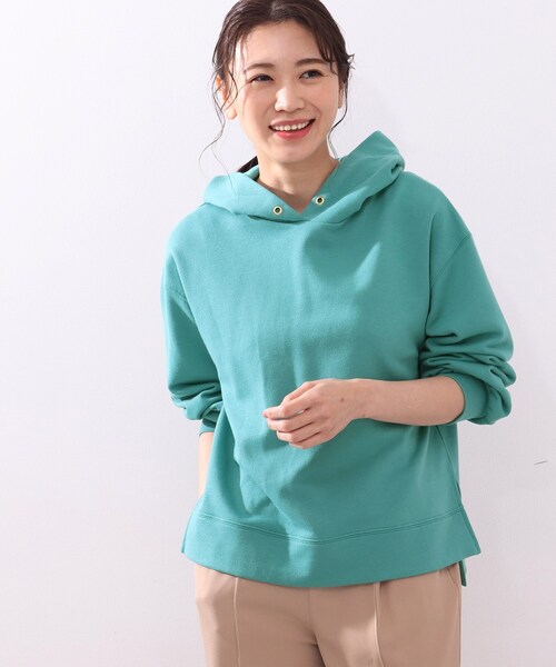【デザイン】滑らかな肌触りの裏毛パーカーです。フード口のゴールドハトメをポイントに、前後差ヘムやボリューム袖で表情を出したシルエットは、シンプルでいてさりげなくこなれたムードに!肩の動きがスムーズなラグランスリーブなので着心地も楽ちんです。【生地感】ふくらみ感ひかえめで春に一枚着しやすい裏毛スウェット生地。こちらの商品は主に春に着用いただける商品です。モデル情報:身長166cm B80 W59 H85 着用サイズ:02(M)店舗へのお問い合わせ商品番号:741-14325●製品寸法:02(M):着丈60cm B98cm 袖丈50cm 肩幅53cm03(L):着丈62cm B103cm 袖丈51cm 肩幅55cm04(LL):着丈64cm B108cm 袖丈52cm 肩幅56cm備考: