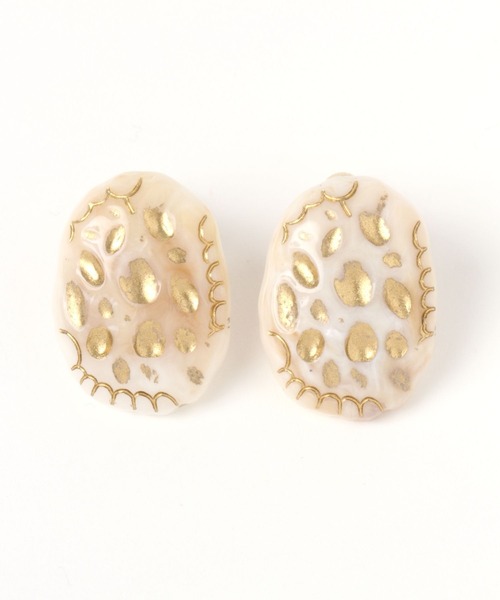 ーーー優しいカラーのマーブルパーツイヤリング。柄を入れてゴールドカラーをプラスしたデザインに。少し大きめな存在感のあるアイテムです。ーーー
