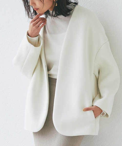 【上品なシルエットとソフトな着心地】 春らしさ感じる色合いとふんわりした質感が魅力 ●POINT ・袖周りゆったりで柔らかな着心地 ・Vネックのシルエットでスッキリみえ ・ご自宅でセルフケアもできる ●デザイン 柔らかくふんわりした風合いが特徴のアウターは、Vネックのシルエットでスッキリと着用していただけます。前身ごろはホックで留める仕様になっており、普段のコーデに取り入れやすいシンプルなつくりも魅力的。 ドロップショルダーで袖周りもゆったりしておりボリュームのあるブラウスでも、もたつかずに着用いただけます。 曲線的なフォルムも女性らしさを際立たせ、普段のスタイリングを上品に仕上げてくれます。セルフケアができるのも嬉しいポイント。 ●おすすめコーディネート オンにもオフにも着回ししやすいダンボールコートは丈感も絶妙なミドル丈で、ボトムスを選ばずに着用頂ける優秀なアイテム。 ブラウスとも相性がよく通勤スタイルにも活躍してくれます。 また、シンプルなデニムなどカジュアルなアイテムも品よくまとめあげてくれるため、ちょっとしたおでかけなどデイリー使いもしやすいのが嬉しいポイント。 スカートに合わせるとより女性らしいフェミニンなスタイルに。 様々なシーンで活躍してくれること間違いなしのアイテムです。 ●素材 ポリエステル 100% ・軽量感とソフトな着心地 ============== 洗濯方法:手洗い 透け感:なし 裏地:なし 伸縮性:あり 生地の厚さ:普通 ファスナー:なし ポケット:あり 光沢:なし ============== 【スタッフ着用コメント】 ●身長:170cm 着用サイズ:F 骨格:ナチュラル 人気のダンボール素材にミドル丈が登場。 サッと羽織るだけでいつものコーデを上品に仕上げてくれるアイテム。 柔らかく軽い着心地なので、シーンを選ばず着回しを楽しめます♪ ●身長:160cm 着用サイズ:F 骨格:ウェーブ 丸みのあるフォルムが女性らしい印象です。 しっかりと厚みがありながらも、着心地はソフトで軽さがあります。 フレアパンツやスカートなど、フェミニンボトムにも相性◎です。 【骨格タイプ】 ・ストレートタイプ 全体的に筋肉質で体にメリハリがあるタイプ 腰とバスト位置も高く厚みがあり、ひざ下は細目 ・ウェーブタイプ 全体的に柔らかな曲線の体のライン 重心が下半身にあり、上半身は華奢で薄い印象 ・ナチュラルタイプ 筋肉や脂肪があまり感じられなく重心の偏りがないタイプ 骨組みはしっかりしており、関節が目立ちやすい ========================== 【注意点】 ※画像の商品は光の照射や角度、お使いのモニター環境により、実物と色味が異なる場合がございます。 あらかじめご了承下さいませ。 ========================== 【お買い物をもっと便利に楽しく♪】 『♡』をクリックでお気に入り登録 ✓「商品のお気に入り登録」で・・・ ラスト1点や再入荷の通知が届きます。登録して頂いた商品だけが対象となる、あなただけのタイムセールが開催されることも! ✓「ブランドのお気に入り登録」で・・・ 新商品や再入荷など、いち早くブランドのお得な情報を 受け取ることができますので、ご登録をおすすめします! ==========================
