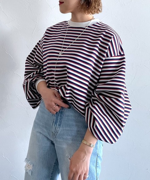 ボリュームスリーブが目を惹くボーダーのプルオーバー ボーダーはベーシックなカラー、マルチカラーの展開があり、ベーシックながらもオーバーサイズでボリューム感を出すことでスタイリングのポイントになります。 程よい生地の厚み感でシーズン長く着用いただける嬉しいポイント! カラーパンツなどを合わせるとトレンド感が出て◎ 〈注意事項〉 ・サンプルにて撮影をしておりますので、実際の商品とは素材や仕様・加工・サイズ等が若干異なる場合がございます。 ・モニター・環境等により実際の商品と色味が多少異なって表示される場合がございます。予めご了承をお願いいたします。 ・撮影環境により、光の当たり具合で色味が違って見える場合があります。あらかじめご了承下さい。 ▼気になるアイテムは《お気に入り登録》がおすすめです!完売カラーの再入荷情報、セール情報、ラスト1点の通知を受け取ることができます! ▼《ブランドのお気に入り登録》で新商品や再入荷などのお得な情報をいち早くお知らせします。