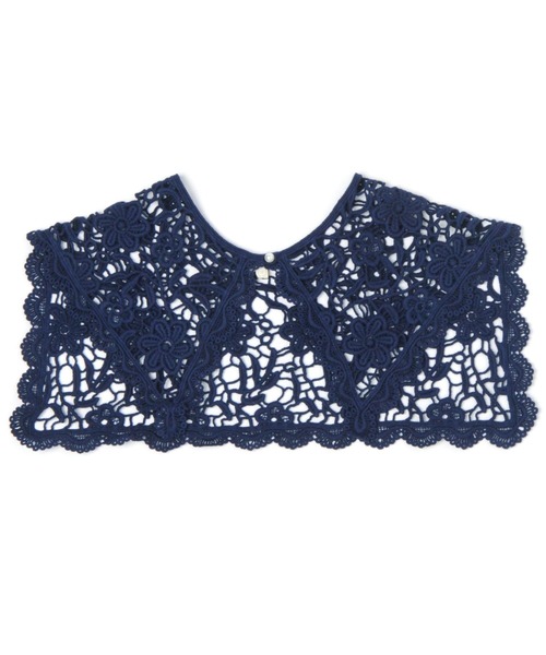 ーーーレースのあしらいが素敵なかぎ針の花柄付け襟。大人も取り入れやすい丸みのないデザイン。ーーースウェットやニットとも相性の良い素材感です。