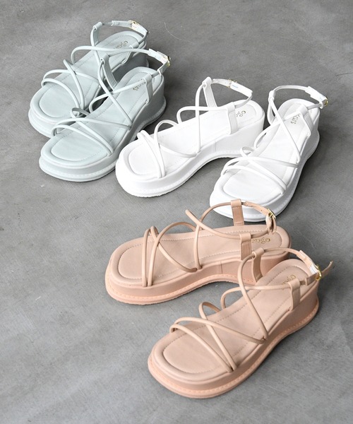 ヌーディな女性らしさ漂うコードサンダルは今夏マストアイテム。足を華奢魅せする細めのストラップと程よいボリューム感あるソールのミックスなデザインが大人のカジュアルスタイルにマッチ。高低差が少なく、楽な履き心地をキープしながらスタイルアップできるのがポイントです。軽量ボディーは長時間履いても疲れにくく、お出かけに最適です。ロング丈のボリューミーなワンピースやボトムと華奢なコードストラップのスタイリングは大人のリラックススタイルに。ガーリーなブラウススタイルにもマッチ。ボトムはパンツをチョイスして甘くなりすぎないようにバランスをとるのが◎タイトスカートと合せたキレイめコーデでもお楽しみいただけますコードストラップはバックルで調節ができるので安心。プラットフォームソールなので前後の高低差がそれほどなく、 脚長効果がありつつも安定した履き心地です。★おススメPOINT★ ●ヌーディな女性らしさ漂うコードストラップサンダル。●ボリューミーなソールと細ストラップが足を華奢に見せてくれるデザイン。●プラットフォームヒールが美脚効果を発揮!●ベーシックカラーに夏らしいイエロー、グリーンを加えた6色展開。 ★スタッフ着用コメント★ STAFF:ゆい 甲高:高め 甲幅:広め 普段履くサイズ 23.5CM (MかLサイズ) 足長:22.5CM 足囲:22CM 足幅:9CM Mサイズでジャストサイズでした。紐サンですが紐が柔らかいので食い込む感じが 一切しないです。土踏まずから踵までなめらかなカーブで高くなるのでとても 自然に盛れます!横から見も綺麗にL字に見えます。 履き心地も軽く熱くなってくるこれからの季節にサラッとはけて良いです。 STAFF:上田 甲高:やや高め 甲幅:やや広め 普段履くサイズ 22CM (SかMサイズ) 足長:22CM 足囲:22CM 足幅:9.3CM 自分は甲が高めなのでSサイズだと締め付けられている感じがしてきつく感じました。 Mサイズだとス超すゆとりがあるように感じたので、足が浮腫んでもあまり締め付け感は感じないと思います。 色合いが春らしく、コードストラップなのでガーリーな感じがして可愛いです。 底が少しクッション性があるので履き心地が良かったです。 STAFF:塩見 甲高:低め 甲幅:広め 普段履LLサイズ 24.5CM (LかLLサイズ) 足長:24,3CM 足囲:22,5CM 足幅:9,9CM LLサイズ試着しました。 ピンクとパープルの色見が凄く可愛いです。 形もコンパクトでダッドスニーカーを挑戦してみたいけど足が大きく見えるかも?と 心配な方でも抵抗なく挑戦しやすいと思います。 くすんだ色で柔らかい雰囲気で、今時の韓国っぽコーデにもピッタリです♪ STAFF:ほっちゃん 甲高:普通 甲幅:広め 普段履22.5~23CM (SかMサイズ) 足長:22CM 足囲:21CM 足幅:8.9CM 靴下有で、Sサイズを試着しました。 クッション性が良く、歩きやすいので長時間履いても疲れにくそうです。 かかと側のストラップで脱げにくい形になっている為、安心して履けます。 カラーが6色展開になっているのでこれからのシーズンにぴったりの商品です。 ▼商品のデザインやお客様の足の形により、感じ方に若干の個人差があります。▼モデル着用写真は撮影環境により、多少実際のカラーと異なる場合がございます。 ☆NOFALLsango ZOZOTOWNお買い物ガイド☆お買い物をよりお楽しみいただく為に ▼商品のお気に入り登録 💛をクリック!完売カラーの再入荷通知・お気に入りアイテムの値下げ・ラスト1点などの通知をお知らせいたします。 ▼ブランドのお気に入り登録 💛をクリック!新商品や再入荷などお得な情報を受け取ることができます。