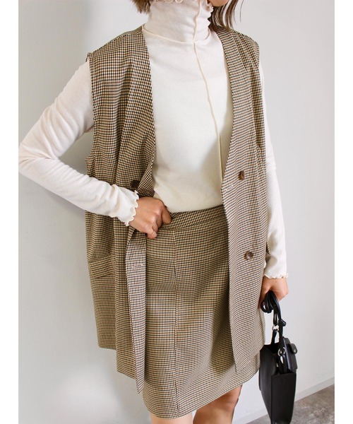 2022 SS 春夏 トレンドアイテム WEB限定 【一枚でも存在感抜群。インナー次第で多彩な表情を見せてくれるジレ】 サッと羽織ればトレンドライクな仕上がりに。 ▼Design ・サイドには便利なポケット付き。 ・バックに入ったベンツがスッキリとした印象に仕立ててくれます。 ・ダブルボタンがクラシカルな雰囲気を演出してくれます。 ・ヒップが隠れるくらいの丈感なので体系カバーも狙えます◎ ▼Fabric ・ザラっとしたマットな質感が落ち着きある仕上がりに。 ・伸縮性もしっかりあるので着心地も抜群です。 ▼Styling ・【4221-338044 ハーフPT】 とセットアップでの着用が可能です! ・Tシャツはもちろん◎ブラウスやワンピースと合わせてもまとまりある仕上がりに。 ・無地のデザインなので、柄ものや、デザインアイテムとも相性良しです。 ・ボトム全般とも合わせやすく相性抜群なのでお好みのボトムと合わせるのも◎ ・ベーシックなカラー、アクセントとなるカラーをご用意しているので、コーデの幅が広がります。 ----------------------------------------- 【以下クロ参考。カラーにより多少の誤差あり】 ・透け感:透けない ・伸縮性:あり ・生地の厚さ:薄い ・裏地:なし ----------------------------------------- 【スタッフ着用コメント】 身長159cm Tシャツと合わせればシンプルに。ブラウスやワンピースと合わせればフェミニンな仕上がりになります。ボトム全般とも合わせやすく、 組み合わせ次第で多彩な表情を見せてくれます。前閉めではモードな雰囲気が増し、前開けでは抜け感ある仕上がりになるので気分次第で雰囲気もチェンジできます◎ 普段のスタイリングにも取り入れやすく、さらっと羽織るだけで雰囲気ある仕上がりに◎ 長めの丈感がスッキリ見えを叶えてくれるのも魅力的です◎