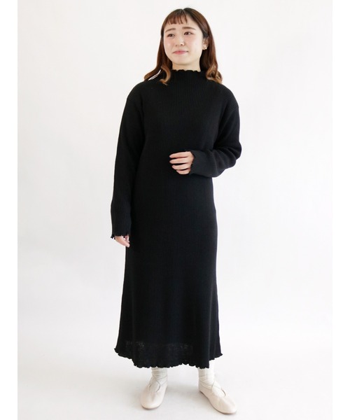 ネックと袖の配色がワンポイントのメローニットワンピース。 1着でコーデが仕上がりラフな着用感が魅力的◎ 伸縮性のある柔らかい生地で着心地も抜群! 大人可愛くこなれ感を演出してくれる絶妙な丈感です。 カジュアルなブーツと相性抜群です。