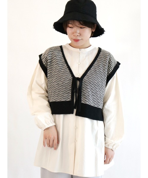 シックな雰囲気漂う前後着ジャカードベスト。 フロントにどちらを持ってきても楽しめる前後着◎ メリハリ感のある縁取りカラーが発色よく立体的なコーデに導いてくれます。 レイヤードの合わせ方で長く楽しめるアイテムです!
