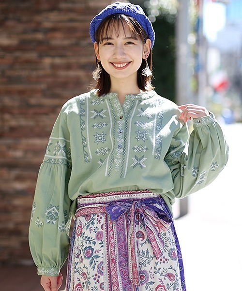 幾何学刺繍をたっぷりと施した、大人のプルオーバー■デザイン胸元と袖にふんだんに可愛らしい刺繍を散りばめた1枚です。袖にはたっぷりとタックを入れて、ふんわりとしたボリューム感を。着脱がしやすいボタン付きのヘンリーネックで抜け感をプラスしました。落ち着いたカラーリングで、大人でも気軽に着られるのが嬉しいデザイン♪■サイズ感レディースフリーサイズリラックス感の漂う、ゆるっと立体的なシルエットです。■素材感・オレンジ/カーキハリがありしっかりとした綿100%素材。・ブルー柔らかく軽やかな綿100%素材。■スタイリング無地のスキニーパンツやワイドパンツを合わせるだけで華やかな印象になります。柄のボトムスと合わせても、こなれた着こなしになってオススメ◎■カラーオレンジ/カーキ/ブルー---------------------------------透け感:透けない伸縮性:なし裏地 :なし光沢 :なし生地の厚さ:普通ポケット:なし---------------------------------【お取り扱い上のご注意】この製品はインド製の生地を使用しています。染め、織りむら等による独自の風合いをお楽しみ下さい。・洗濯やクリーニングによって多少縮んだり、色落ちすることがあります。・濃色品は摩擦や水に濡れますと移染する恐れがありますので、単独で洗ってください。また、淡色の衣類との併用はご注意ください。・デリケートな素材ですので、激しい運動や極度な力によって、縫い目が開いたり目寄れする事がありますのでご注意ください。・刺繍、レース、ビーズなどの装飾がある場合は引っかかり易く、解け易いので、お取り扱いにご注意ください。・直射日光や蛍光灯の長時間照射は、変色の要因になりますのでお避け下さい。【TITICACAのお買いものをお楽しみいただく為に!】▼商品のお気に入り登録完売カラーの再入荷通知や、ラスト1点の通知、セールの通知も受け取ることができます。▼ブランドのお気に入り登録新商品や再入荷など、いち早くブランドのお得な情報を受け取ることができます!
