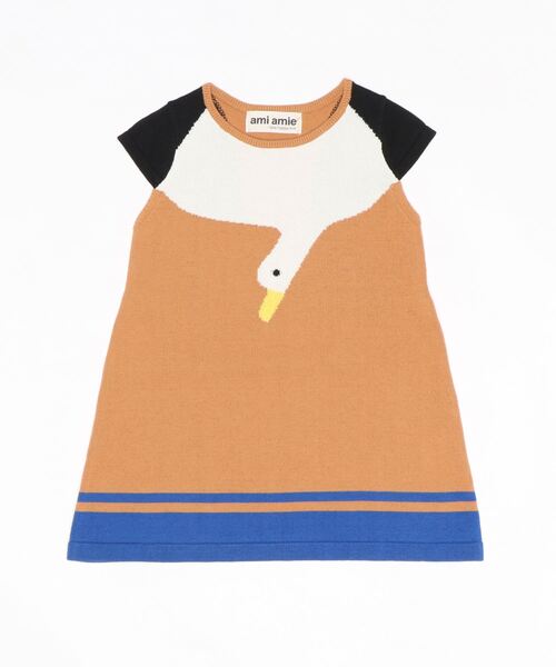 首元に可愛いカモメが編み込まれたワンピースです。カモメの翼が襟のように見えておしゃれです。※お洗濯時に嬉しいマシンウォッシャブルです。