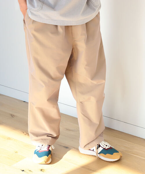 拘りをギュッと詰め込んだイージーパンツ ディテールや素材など細部に至るまで拘りを詰め込んだイージーパンツ。ウェストゴムや裾も含めたドローコードなどイージー仕様のディテールをベースに、膝にタックを取り入れることで立体感を演出。素材には、横糸にイエローやパープルの糸を使用した玉虫素材を採用し、光沢感と陰影のある表情を演出しています。バルーン型のワイドシルエットでリラックス感がありつつ、素材の風合いがクリーンな雰囲気も兼ね備えており、カジュアルはもちろんジャケットなどのスタイルにも相性の良い汎用性の高いパンツです。 NEW VINTAGE 温故知新。時代の空気感を纏っているモノを現代的にアップデート。“モノ自体が持つ良さ”に“時代の変化”をかけ合わせたクラシックとムードの融合。 ※光の当たり具合やパソコンなどの閲覧環境によって、実際の色味と異なって見える場合がございます。予めご了承ください。 ※商品の色味は商品単体で撮影した画像をご参照ください。