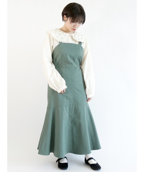 旬のマーメイドシルエットに仕上げた、レディムード漂うジャンパースカート。 カジュアルさの中にも女性らしい大人顔を演出してくれます。背面はシャーリング仕様で心地よくフィットし、着心地もノンストレス◎ 合わせるトップス次第で、様々なスタイリングのアレンジも楽しめる1着です。