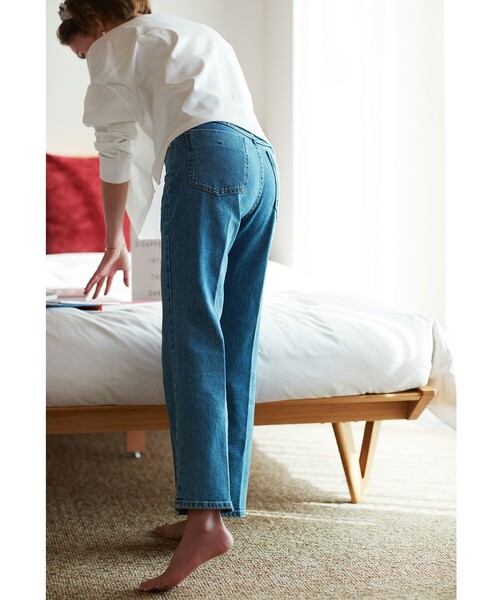 【GISELe6月号掲載】【My style is...掲載】リサイクルコットンを使用したオリジナルデニムシリーズ〔202 フレア〕【素材】本格的なデニムの表情を追求しつつも、ストレッチを効かせることではきやすさを両立させたオリジナルデニムシリーズ。12oz(オンス)のほどよい厚みのあるデニム素材で、デニムならではの豊かな表情や加工感がスタイルに動きをプラス。今回から、コットンの一部をリサイクルコットンに変更し、より環境に負荷をかけないサスティナブルなアイテムに進化しています。【デザイン】シルエットをやや見直し、よりキレイなレッグラインに進化したフレアデニム。ウエストやワタリ部分はタイトに、高めの膝位置から裾にかけてキレイなセミフレアシルエットに。やりすぎないフレアシルエットでスタイルに取り入れやすく、非常に脚長効果の高い一本です。センタークリースを入れ、よりキレイなラインを強調させています。タイト目なシルエットですが、ストレッチが効いているのではき心地も快適。ジャストレングス設定で足元を選ばず、キレイ目なシューズでも、サンダルやスニーカーとも相性〇です。※ポケット数:横×2 後ろ×2※WEB限定サイズ:34(SS),42(LL)こちらの商品は主に春夏に着用いただける商品です。モデル情報:身長168cm B76 W58 H86 着用サイズ:38(M)店舗へのお問い合わせ商品番号:637-64202●製品寸法:34(SS):W60cm H80cm 股下68cm 前股上27cm 渡り幅24cm 裾幅20cm36(S):W63cm H83cm 股下69cm 前股上28cm 渡り幅25cm 裾幅21cm38(M):W66cm H86cm 股下70cm 前股上29cm 渡り幅26cm 裾幅22cm40(L):W68cm H88cm 股下71cm 前股上30cm 渡り幅27cm 裾幅23cm42(LL):W70cm H90cm 股下71cm 前股上30cm 渡り幅28cm 裾幅23cm備考: