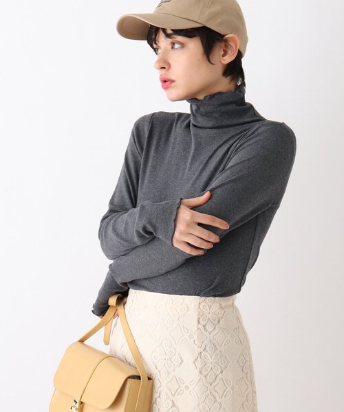 オーガニックコットンを使用した、ドライなタッチが魅力のタートルネックカットソー 【素材】 オーガニックコットンを使用し、強く撚糸することでドライなタッチに仕上げたフライス素材を使用したハイネックカットソー。 肌触りも良く、ロングシーズンで着用頂ける素材感になっています。 ※こちらの商品は透け感があるため、インナーの着用をおすすめします。 【デザイン】 フライス素材で、程よく身体にフィットするサイズ感で、ベーシックな着こなしや、レイヤードにおすすめの1枚。 襟先と袖口は、繊細なメロー始末にする事で、華奢な見え方に仕上げています。 春のレイヤードとして重たくならず、着こなして頂けるタートルネックカットソーです。 ソリッドなオフホワイト、ブラックと、杢見えのグレーの3色展開。 --------------- 【C(シー) OPAQUE CLIP】 「PLAYFUL FEMININE」をキーワードに、天然素材と美しくポジティブなカラー、 ワクワクするようなディティールや、ミックス感のあるスタイルなどファッションの楽しさを詰め込んだ新レーベルです。 こちらの商品は主に春に着用いただける商品です。 モデル情報:身長163cm B80 W60 H89 着用サイズ:00 店舗へのお問い合わせ商品番号:637-14217 ●製品寸法: 00(00):着丈58cm B70cm 袖丈63cm 肩幅34cm 首周り36cm タートル部分H14cm 備考: