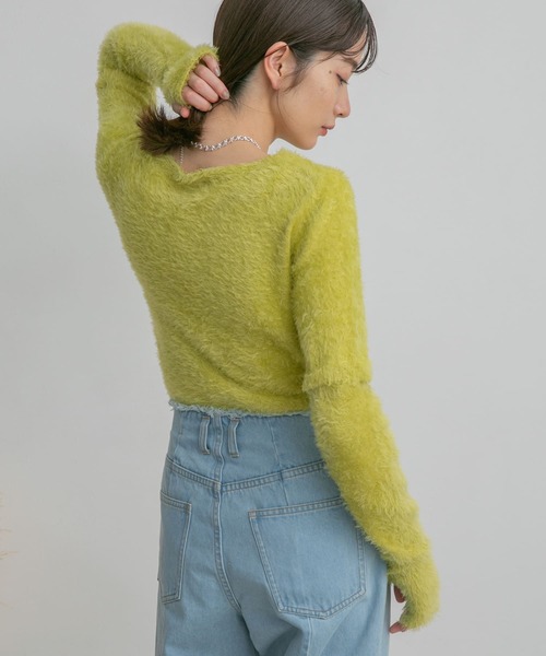 【ふわふわの手触りが魅力のフェザーヤーンセパレートニット】 ふわふわの手触りが気持ち良いフェザーヤーンニット。一見シンプルなトップスに見えますが、袖を取り外すことで半袖でも着ていただける2WAY仕様にしました。コンパクトなサイズ感なので、着ぶくれしにくいスタイルを仕上げてくれます◎ POINT ・半袖でも着ていただける2WAY仕様 ・着心地の良いフェザーヤーン素材 ・コーデの主役にぴったりなカラーリング COORDINATE 肌寒い季節は長袖で着ていただき、春は半袖でシンプルにデニムと合わせていただくだけでサマになります。程良く身体にフィットするサイジングなのでサロペットのインナーに取り入れても着ぶくれせず合わせていただけます。 ====================================== お気に入り登録のおすすめ ■商品のお気に入り登録 再入荷・ラスト1点、セールの通知などを受け取ることができます。 ■ブランドのお気に入り登録 新商品や再入荷、クーポン情報などお得な情報を受け取ることができます。 ====================================== ※商品画像は、光の当たり具合やパソコンなどの閲覧環境により、実際の色味と異なって見える場合がございます。予めご了承ください。 ※商品の色味の目安は、商品単体の画像をご参照ください。 ▼お気に入り登録のおすすめ▼ お気に入り登録商品は、マイページにて現在の価格情報や在庫状況の確認が可能です。 お買い物リストの管理に是非ご利用下さい。素材感 透け感:なし 伸縮性:あり 裏地:なし 光沢:ややあり ポケット:なし One
