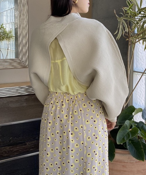 2wayで着こなせる短丈のボレロ風なレイヤードアイテム前後どちらでも前にして着れる2way仕様の短丈ニット。さらっとした肌触りに軽い着心地がクセになるニットアイテムは、ほどよく肉厚な生地感がこれからの季節のスタイリングにぴったりな1枚です◎短丈デザインでスタイルアップも叶う◎ワンピースやブラウスとのレイヤードコーデにも欠かせない1枚です。♪商品のお気に入り登録お気に入り登録した商品は、ラスト1点になった時、完売商品の再入荷、セールになった時にお知らせします。♪ブランドのお気に入り登録新商品の発売、再入荷、セール情報など、ブランドのお得な情報を受け取ることができます。