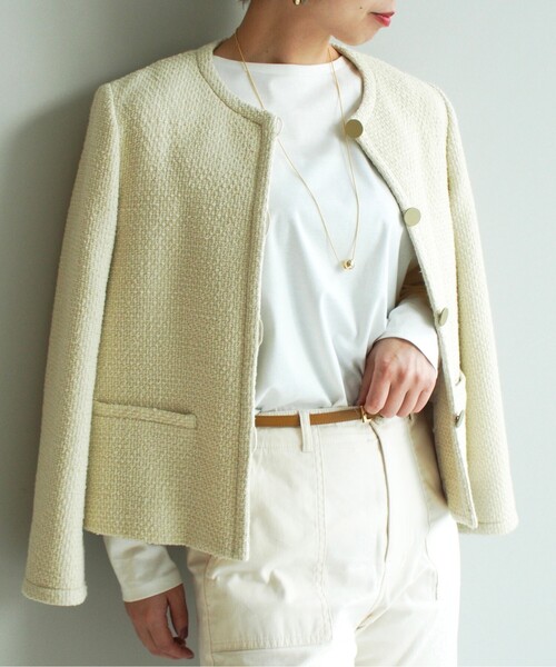 【デザイン】 滑らかな表面感でありながら、編み目の立った組織が特徴のアーバンジャージ。 長繊維のギザコットンを使う事でしっかりした生地感と良質感を出しています。 デザインは素材を活かすようシンプルなラウンドネック。 肩幅を広めに設定してリラックス感を出しました。 【生地感】 繊維長の長いギザ綿を特殊な紡績技術で撚り合わせた糸を用いた天竺です。 きめ細かく滑らかで毛羽が少なく、上品な光沢感が特長です。 ※こちらの商品はやや透け感があるため、インナーの着用をおすすめします。 【着こなしポイント】 お洒落さの演出としてベーシックな物を組み合わせて魅力的な雰囲気を出すコーディネイトを目ざして欲しいと思います。 生地の良さが着る人をランクアップさせて見せる事を意識して。 ※2021秋冬商品の一部より「レギュラーサイズ/トール&ラージサイズ」の商品番号と価格が統一となりました。 こちらの商品は主に春に着用いただける商品です。 モデル情報:身長157cm着用サイズ:02(M) 店舗へのお問い合わせ商品番号:153-14210 ●製品寸法: 00(SS):着丈60cm B89cm 袖丈53cm 肩幅42cm 02(M):着丈63cm B96cm 袖丈55cm 肩幅45cm 04(LL/トール):着丈65cm B102cm 袖丈56cm 肩幅47cm 44(4L):着丈66cm B110cm 袖丈54cm 肩幅50cm 48(6L):着丈68cm B118cm 袖丈54cm 肩幅51cm 備考: